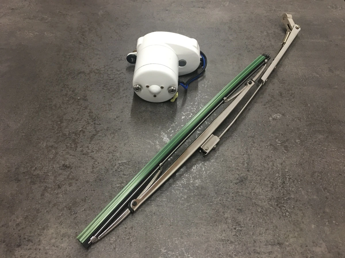 Scheibenwischersatz mit Motor, Arm & Wischerblatt (NIRO 316). Motor 1-Speed, 12V – 6W / 0,8Nm (nominal) / ≤55db (A). Schalter auf dem Motorgehäuse. Wellenlänge 58mm, max. Wandstärke 19mm. Wischwinkel: 90˚. Wischschläge: 35 – 40 p.min.Empfohlene Blattlänge: 300mm, Armlänge 300mm.