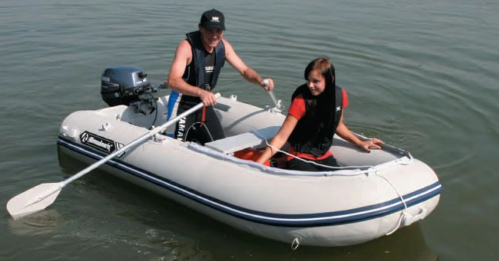 Zwei abnehmbare Sitzbretter, zwei Monagebasen zur Befestigung von Rutenhalter bzw. Fishfinderbasen, je ein Paar Velcro-Laschen rechts und links innen an den Schläuchen zur Fixierung diverser Gegegnstände wie Angelruten etc. Weiteres drei Tragegriffe, um die Boote gut und bequem transportieren zu können. Versenkte Ventile, kräftige zerlegbare Ruder, Spritzschutz auf beiden Seiten des Heckspiegels, Halteleinen links und rechts, ebenso zeri Schleppringe. Zu dieser überkompletten Ausstattung kommt selbstverständlich noch eine Hochdruck-Fußpumpe, ein Luftdruck-Prüfmanometer und ein Reparaturset. Auch eine Tragetasche wird kostenlos beigegeben.