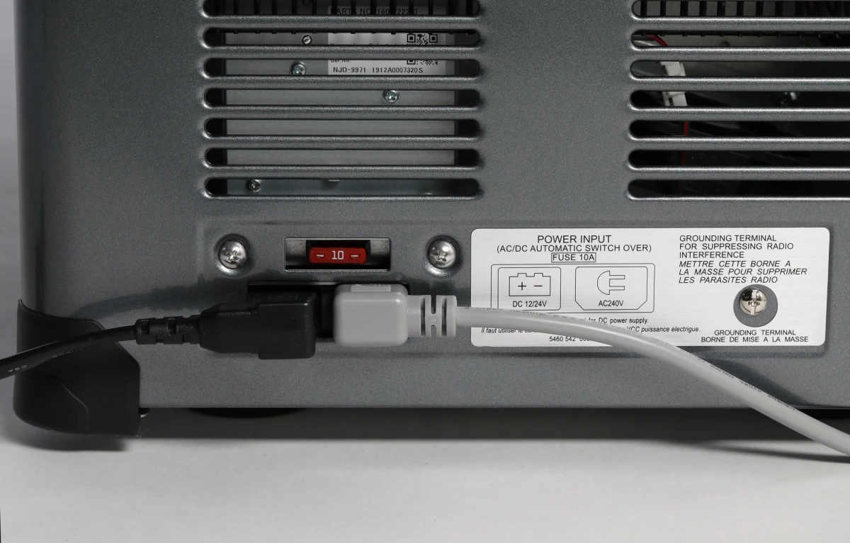 Lieferumfang: Kühlbox, Bedienungsanleitung, AC-, DC-Kabel, Handgriffe mit Schrauben