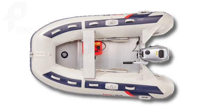 Wer den Spaß ernst nimmt, hat mit dem Aluminiumdeck mit V-Kiel eine besonders robuste Option. Damit sind Sie für alle Wasser bestens gewappnet. Die extragroßen Tragschläuche nehmen dem Wellenschlag viel Kraft