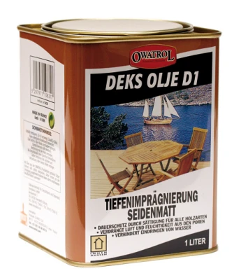 DEKS OLJE D1 für Holzboote, Hartholzterassen, Hartholzmöbel, Fenster, Türen…. – Sättigung – Durchtränkung – Stabilisierung Durchtränkung/Sättigung (durch maximales Eindringvermögen) des Holzes mit dem Effekt, dass die ausgefüllten Holzporen das Eindringen von Wasser verhindern.