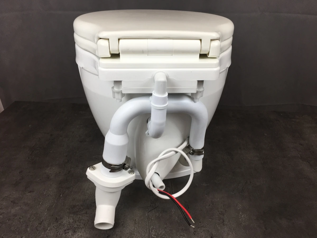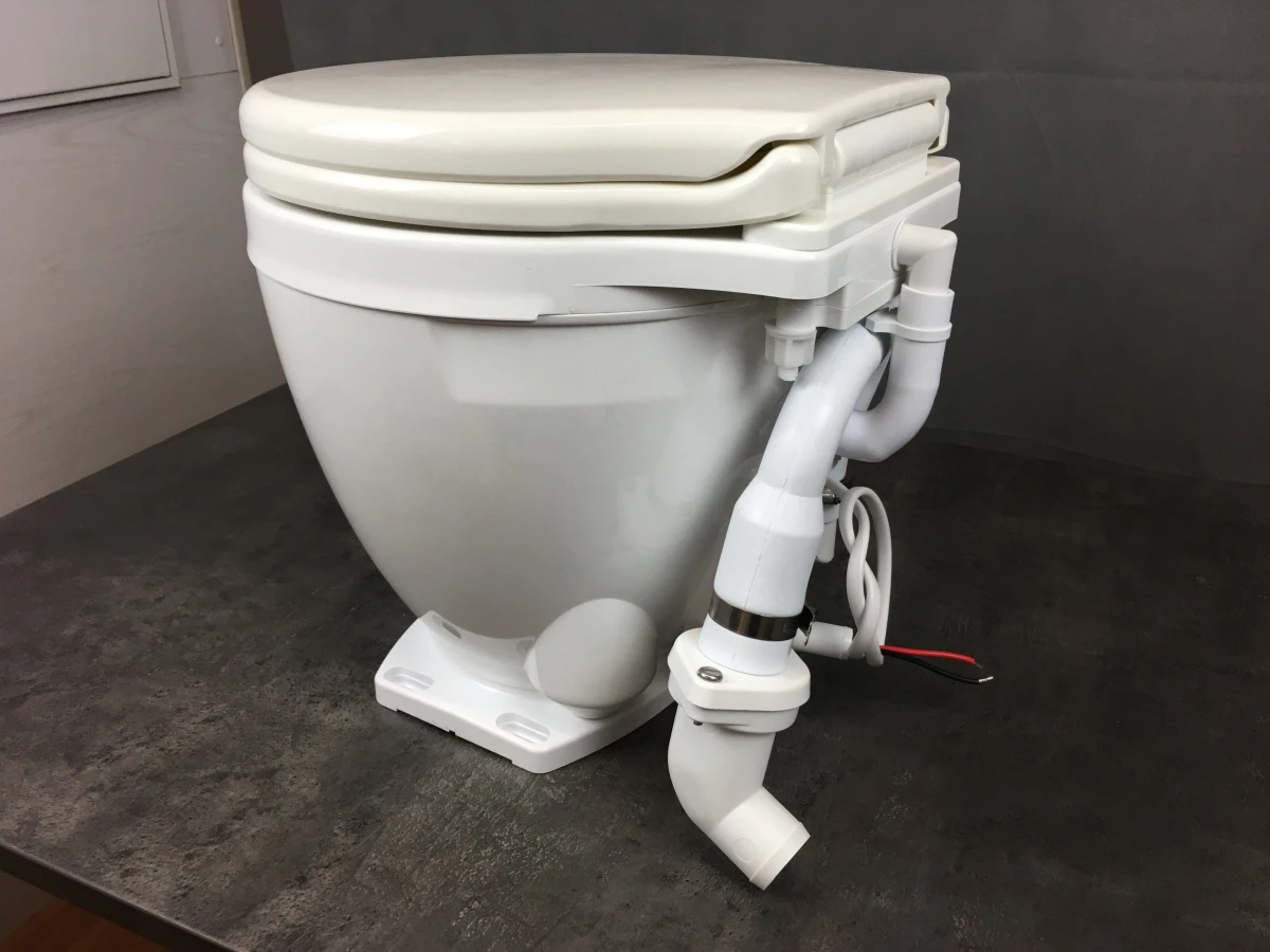• Lite Flush elektrische Toilette • raumsparende, kompakte Toilette • verbraucht weniger als 1A/Std. pro Tag • passt auf die Montagelöcher der Jabsco Standard Toilette • Maße: BxHxT 401x373x402mm • ISO 8846