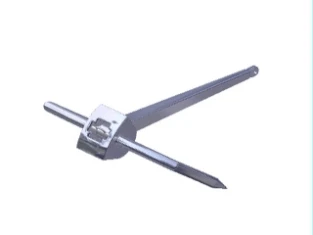 - An den Außenrändern der Flunken sind starke zugespitzte Dorne (2). Diese dringen auf hart gepresstem Sand oder auf Seegras sicher in den Ankergrund ein, ähnlich wie die Spitzen des Stockankers.