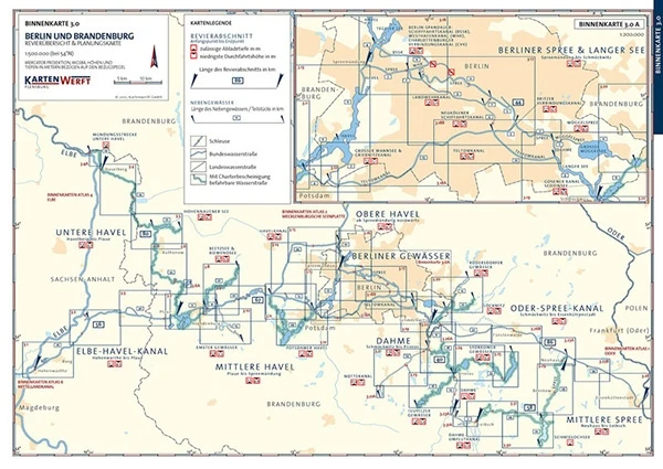 Der Revierführer Berlin und Brandenburg | BINNENKARTEN ATLAS 3 umfasst sämtliche Wasserstraßen von Magdeburg über Berlin bis Eisenhüttenstadt. Für eine einfache und navigatorisch sinnvolle Törnplanung wurden die Gewässer in die Revierabschnitte Elbe-Havel-Kanal, Mittlere und Untere Havel, Berliner Gewässer, Dahme, Oder-Spree-Kanal sowie Mittlere Spree gegliedert, die eingehend vorgestellt werden.