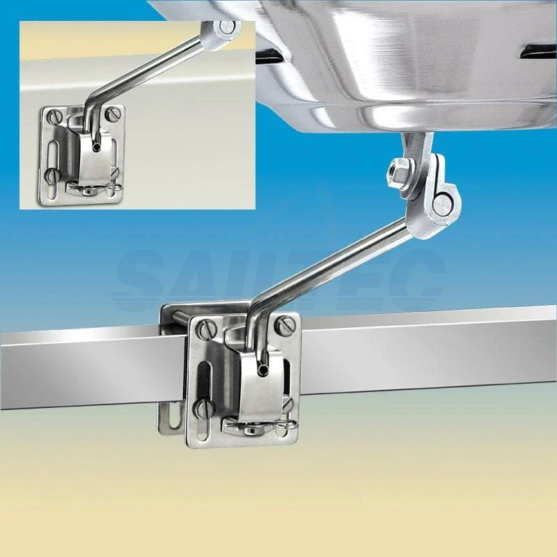Diese vollständig aus 18-8 Edelstahl gefertige Halterung eignet sich für alle senkrechten Flächen, wie Schotten, Rümpfe, Geländer oder Kajütwände. Auch für Vierkant- und Flachrelinge verwendbar. Sie passt an waagerechte Relinge bis 57mm Höhe bei beliebiger Tiefe oder an senkrechte Relinge bis 41mm Breite bei beliebiger Tiefe. Der Stabteil lässt sich schnell ohne Werkeug demontieren. Für die Montage ist Befestigungsmaterial erforderlich. Gesamtlänge von Befestigungsplatte bis Ende Stab ca. 26cm, Höhe von Unterkante Befestigungsplatte bis Oberkante Stab ca. 17cm