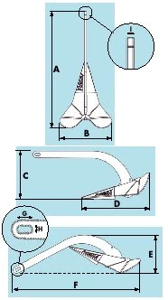 Hauptankerplatz : 12.5 m / Zweitankerplatz 16 m Schnelles Eingraben und besonders guter Halt durch eine schwere Spitze und sehr breite Flunken. Verzinkter Stahl : 55 kg/mm 2 . Sehr hohe Haltekraft dank spezieller Konstruktionsgeometrie. Sie können deshalb bis zu 2 Größen unterhalb des normalerweise empfohlenen Ankergewichts auswählen. Gewicht: 16 kg / 35.3 kg Das Ankergewicht gilt lediglich als Richtgröße in Verbindung mit der Bootslänge. Berücksichtigen Sie bei der Auswahl Ihres Ankers zusätzlich die Bootskonstruktion. A : 815 mm / B : 374 mm / C : 340 mm / D : 503 mm / E : 259 mm / F : 881 mm / G : 40 mm / H : 18 mm / I : 14 mm.