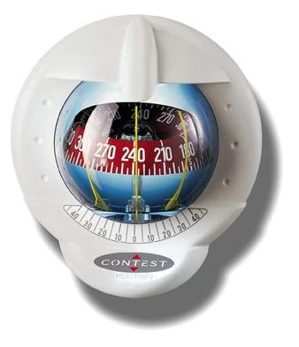 Kompass Schotteinbau für Segelboote ab 9 m. Mit der Erfindung des beidseitig ablesbaren Kompasses, hat es Plastimo dem Segler ermöglicht, den Kurs sowohl von der Kabine als auch vom Cockpit aus abzulesen. Heute kann der Contest 101 noch mehr : er kann an jedes Schott montiert werden und ausserdem passt sein modernes Design auch auf die neuesten Boote. – Doppelte Ablesbarkeit: vom Cockpit und der Kabine aus. – Doppelte Gradeinteilung : horizontal und vertikal. – Konische Rose mit einer 5°-Einteilung, Scheinbarer Ø der Rose : 100 mm. – Kurswiederholung alle 30° – Montage: kann auch am Masten befestigt werden. – 3 Hilfsteuerstriche bei 45° – Krängungsangabe alle 10° – Kompensation als Zubehör – Beleuchtung (12 Vcc): rot für schwarze Rose, weiss für gelbe und rote Rose. – Geliefert mit Schutzkappe, Einbauschablone 5 Jahre Garantie.