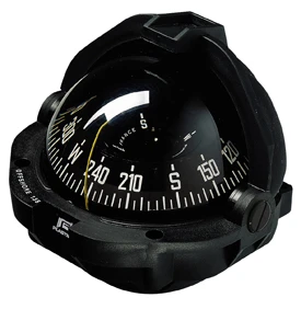 Kompassrose: 5°-Einteilung, scheinbarer Durchmesser 91 mm. Kurswiederholung alle 30°. Einzigartige Abdeckung: einklappbare Schutzhaube mit 3 Schiebeelementen. Einbau: Wird serienmässig als Einbaukompass geliefert. Kann auf Haltebügel aufgesetzt werden. (Haltebügel als Zubehör erhältlich)* Enthält Haltebügel und Schrauben. Bestellen Sie den Kompass zum Einbau und den entsprechenden Haltebügel. Widerstand gegen Vibrationen: speziell gedämpftes Rosensystem 1 Steuerstrich. Kompensation: Serienmässig geliefert Beleuchtung 12 V : 1 Glühbirne bei konischer Rose. – 5 Jahre Garantie. Konform des Französischen Erlasses vom 23 Nov. 1987.