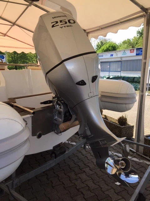Das RibStar Heavy Duty 680 SE, hergestellt aus einem hochwertigen HYPALON Material, ist in Kombination mit dem Aussenborder Honda BF 250 inkl. Edelstahlpropeller und dem Harbeck Trailer Typ BT 3500 perfekt ausgestattet.