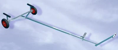 Ausführung: leichte Baureihe, ALU natur, 4x zerlegbar, Räder 400x100mm, vorne V-Auflage klemmbar, für Boote bis 4.50m Länge, Zuladung bis 240 kg.