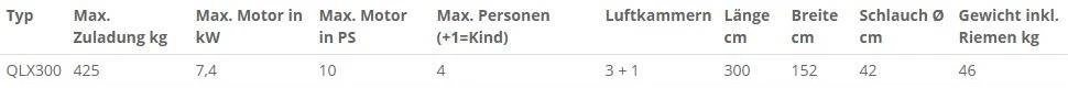 Das Talamex Aqualine QLX mit Aluminiumboden ist mit einem aufblasbarem Kiel ausgerüstet. Der Kiel sorgt für den tiefen V-Boden, der dem Boot seine perfekten Fahr- und Rudereigenschaften gibt. Der Aufbau des Aluminiumbodens erfordert zwar etwas mehr Zeit, dafür gibt der Aluminiumboden dem Boot aber große Festigkeit und Stabilität und ist nahezu wartungsfrei. Das QLX Boot ist sehr gut geeignet für Davits und als Freizeitboot.