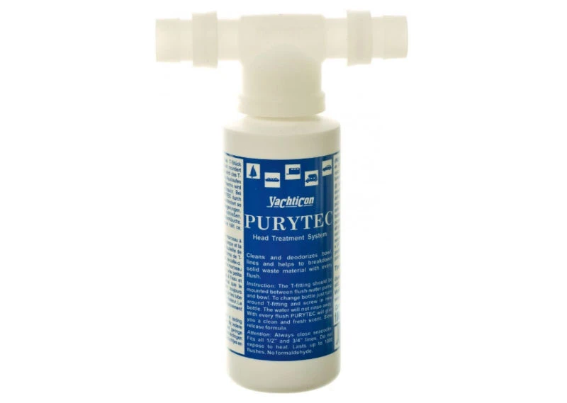 Purytec Set T-Stück + 100ml Flasche gegen Ablagerungen, Kalk, Gerüche und Bakterien im gesamten Spülbereich Ihres Bord-WC’s spendet frischen Geruch bei jedem Spülen einfach zu montieren passend für 1/2″ und 3/4″ Schläuche hält bis zu 400 Pumpenhübe ohne Formaldehyd die optimale Lösung für Ihr Bord-WC